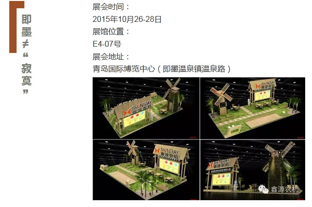备受瞩目的“世界知名,亚洲第一”《中国国际农业机械展览会》将于2015年10月26日至28日在青岛国际博览中心举行。