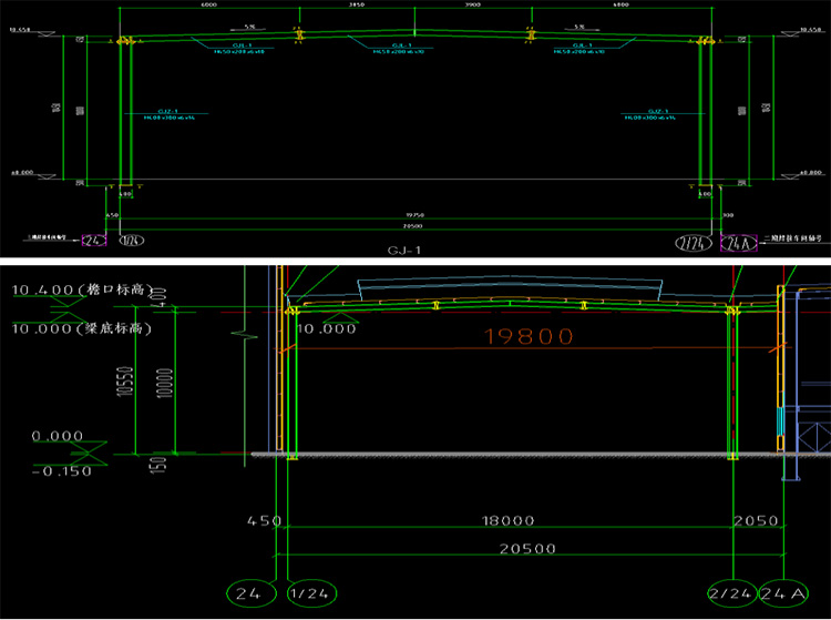 20、零部件焊接厂GJ5详图A轴和T轴GJZ-1型号为H650x400x18x20,辅房平面布置图1-2轴交T轴GKZ2型号为H650X370X18X20,二者不符,请明确。