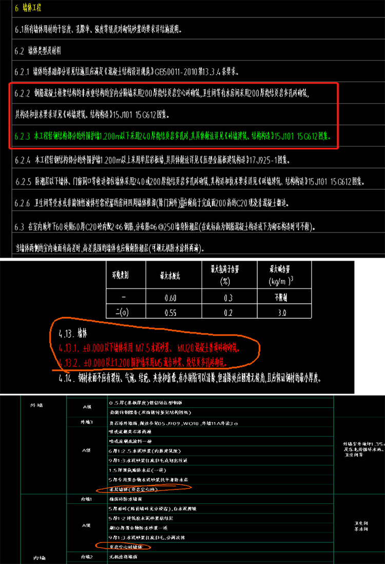 24、砌体墙材料建筑与结构设计明不一致,请明确做法。