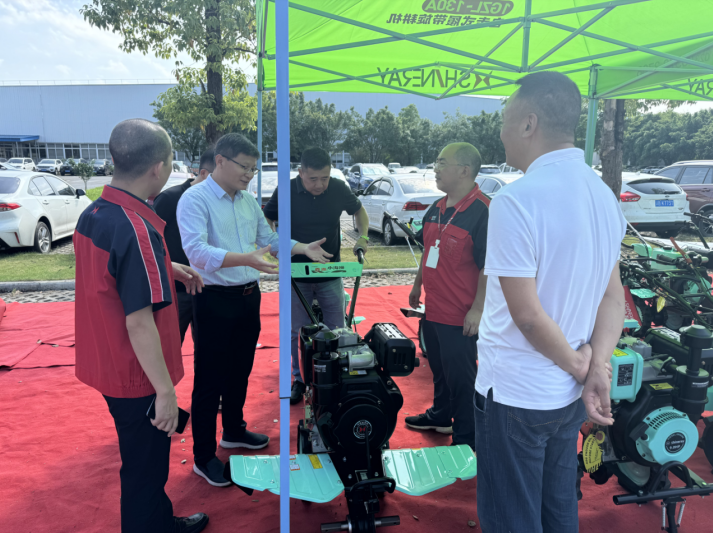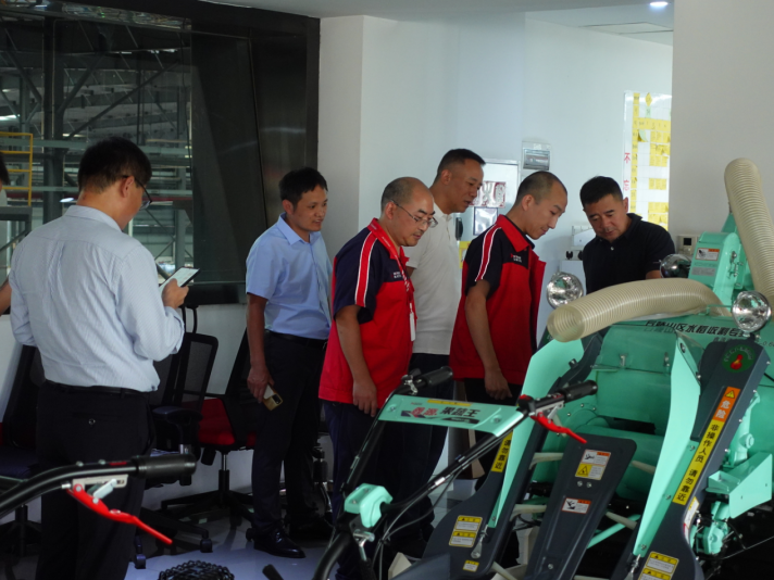专家组一行首先在鑫源农机多媒体中心听取了鑫源集团企业发展介绍,在黄总的指引下,专家组走到了产品展示区,技术负责人丁小兵向大家分别介绍了我司的小霸王微耕机、田园管理机、鑫源收割机、发电机组、园林草坪机等核心产品。大家边听介绍边仔细打量产品的每个细节,还时不时掏出手机拍照记录,对鑫源农机的产品品控给予好评,过程中专家组心系企业发展,特别询问了鑫源农机产品销量和盈利情况,大家对此进行了深入交流和探讨。