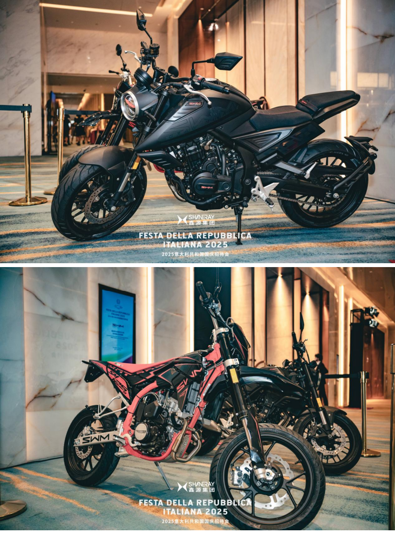 此次活动,鑫源集团特别展示了源自意大利的SWM品牌摩托。作为意大利工艺与设计美学的结晶,SWM摩托吸引了众多嘉宾驻足欣赏。