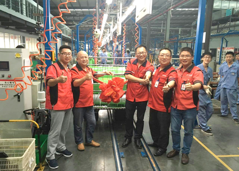 6月20日,鑫源农机首款全新升级乘坐式稻麦收割机4LZ-0.9L在收割线上披红挂彩,成功下线,鑫源农机公司经管会成员出席下线仪式。