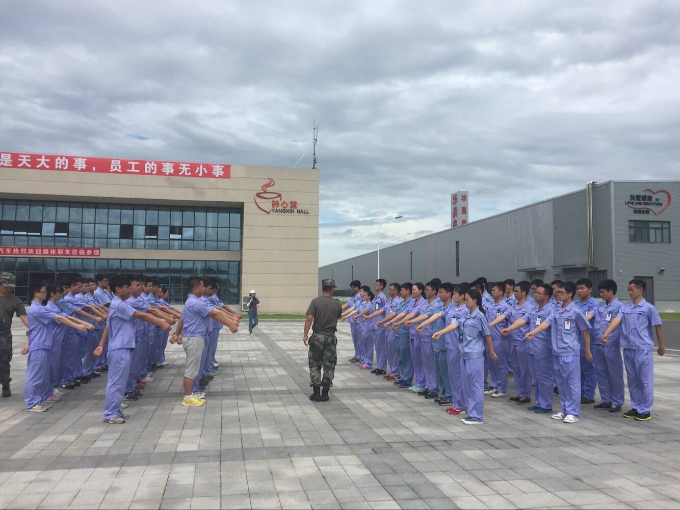 开训仪式结束后,由训练教官带领四个连队进行专业的团队建设及军事训练。在第一天的训练中每一位新同事高昂的士气,让我们看到鑫源未来的希望。