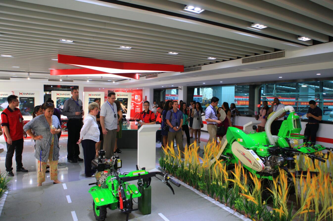 一行人先后参观了鑫源连锁体验中心、行政大楼,产品展厅及摩托车、汽车、农机三大产业生产车间。