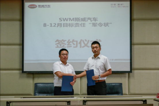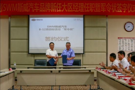 秋意浓浓洒豪迈,绿意腾腾映雄心。伴随着重庆初秋的第一场雨,SWM斯威汽车大区经理任命暨8-12月目标责任“军令状”签约仪式在鑫源工业园含谷基地隆重召开。