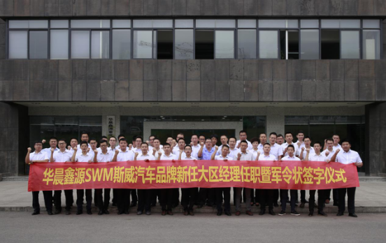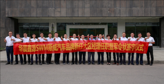 鑫源控股副总裁、华晨鑫源汽车销售公司总经理张洪岩先生,SWM斯威品牌事业部品牌总监助理白松先生,销售部、渠道部、市场部等部门负责人以及全国12个大区的大区经理与区域经理参加了此次仪式。