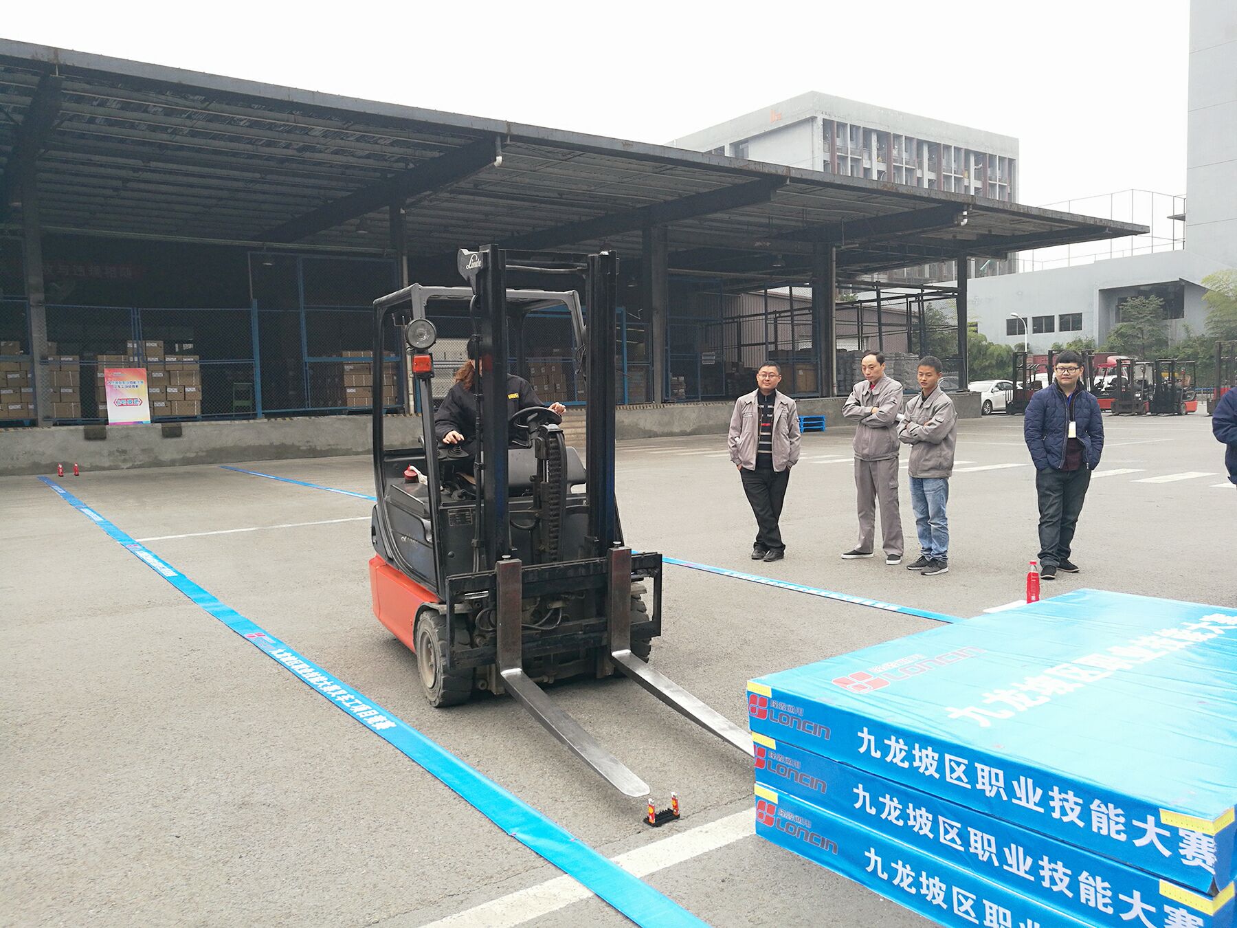 接下来的叉车比赛竞争更为激烈,要求参赛者在规定时间内安全转运托盘和可乐瓶,以及操作叉车点燃指定位置的打火机,用时最少者获胜。失之毫厘差之千里,一点微小的失误就有可能前功尽弃,这就要求参赛人员有娴熟的技艺和过硬的心理素质。鑫源摩托的参赛员工克服种种困难,在叉车比赛中取得优异成绩。