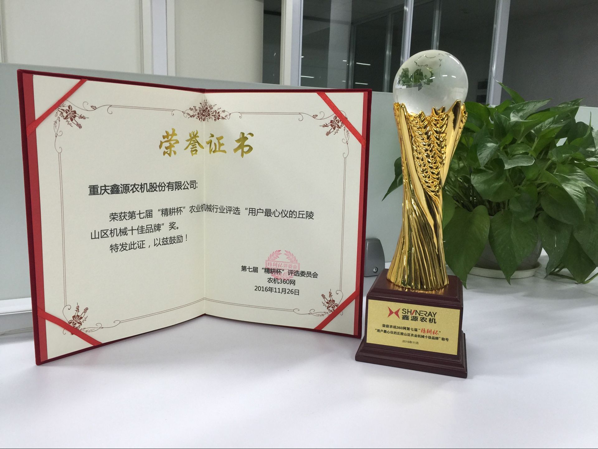 (第七届“精耕杯”丘陵山区机械十佳品牌获奖证书与奖牌)