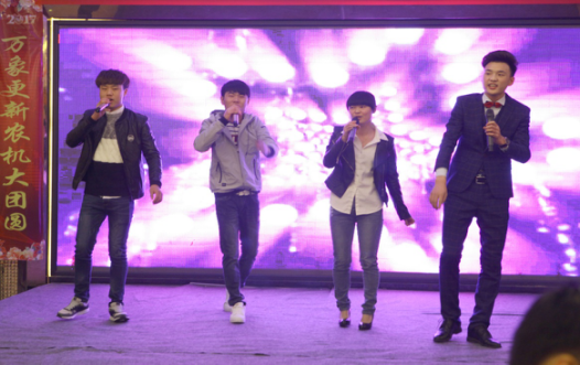 随着倒计时的鼓声,团拜会在一首《红火的日子》中拉开序幕。接下来各个部门带来的不同形式的精彩节目,为团拜会助兴,更展示了鑫源农机人的无尽风采。