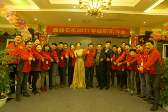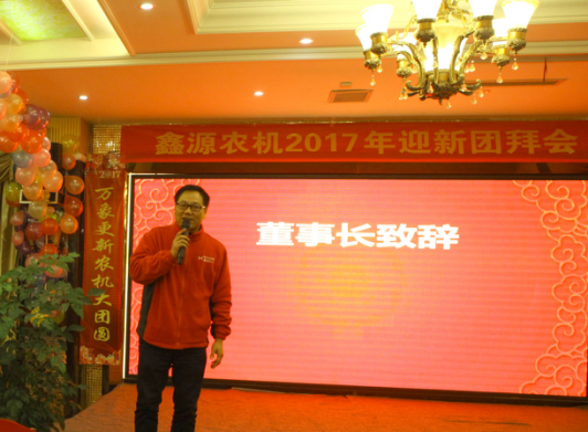 团拜会上, 鑫源农机杨董事长上台致辞。杨董肯定了公司各部门在16年里所做的贡献,并对全体员工的辛勤努力表示了感谢、对公司继续发展壮大的期许,杨董的讲话饱含深情,令人振奋。2017年,鑫源农机全体员工势必拧成一股绳,以鑫源核心价值观为准绳,不忘初心,砥砺前行,再上一个新台阶。