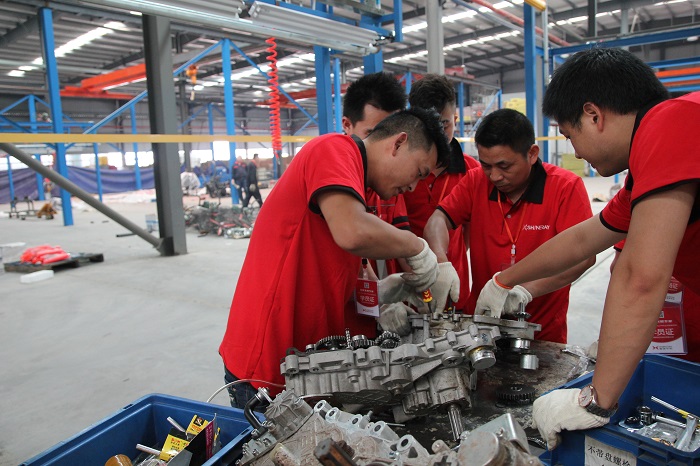 培训由专家理论讲课、学员现场拆装、故障模拟、技能PK相结合的多种方式配合。学习范围覆盖鑫源收割机、通用动力等产品的使用维护保养及故障判断与排除技巧。