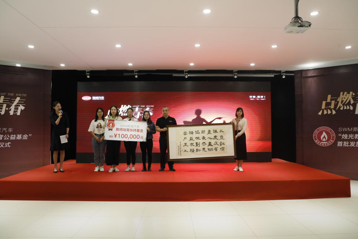 9月10日,“点燃青春·SWM斯威汽车‘烛光教育公益基金’发放仪式”,在SWM斯威汽车涪陵制造基地盛大举行。SWM斯威汽车正式发放了首批“烛光教育公益基金”,同时发布“SWM斯威汽车教师专属定制礼”,在教师节这个特殊节日里,为老师们送上了一份最有意义的节日问候。