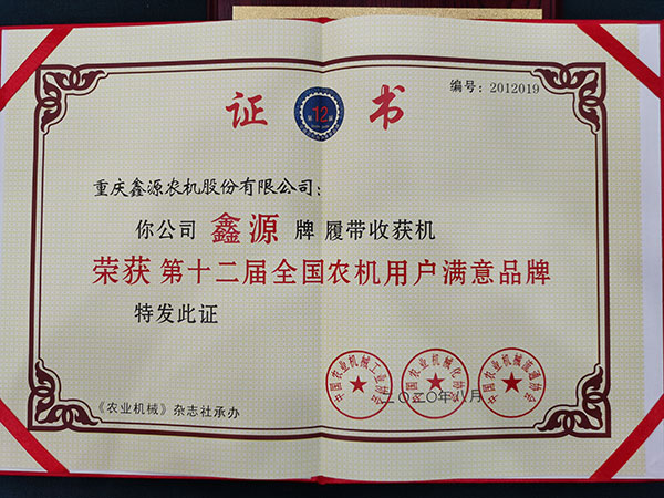 近日,“第十二届全国农机用户满意品牌”揭晓,鑫源农机收割机凭借可靠的性能和优质的服务喜获荣誉。