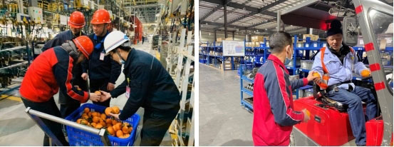 由汽车制造事业部副总经理刘渝牵头,为每一位奋战在岗位上的员工发放“爱心橙”。一份份水果,虽然并不贵重,但饱含了对每一位与公司共同战斗的家人的关心与慰问,在恢复生产、努力工作的同时,公司也希望各位家人照顾好自己的身体。