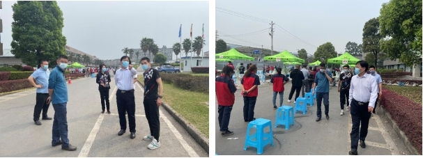 3月14日上午8:00,集团疫情防控领导小组根据上级指示,抽调含谷园区各公司30余名志愿者,担任园区核酸检测点的体温检测、环境消杀、现场信息录入、秩序维护、后勤保障、社区检测支援等工作。在检测开始前,为防止检测造成大规模人员聚集以及尽量将检测对生产的影响减到最小,集团疫情防控领导小组在检测工作中实施分批次进行的方案,保证防疫、生产两不误。由于准备充分、预案得当,鑫源集团检测点大规模核酸检测工作得以顺利开展。