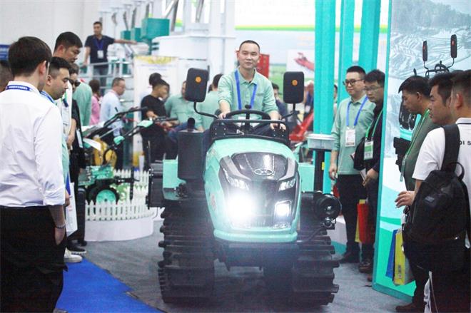 在本届国际农机展上,鑫源农机的展位格外亮眼,全新冰蓝色产品外观,受到了各级政府领导及广大客户的一致认可。1GZL-130A鑫猎豹自走履带旋耕机作为本届展会亮相的主打产品,吸引了无数人驻足停留试驾,1GZL-130A采用国四三缸30马力柴油发动机,动力超强;行走系统采用超宽高花橡胶履带确保湿地作业不打滑,水田作业不下陷;变速箱采用HST液压双差速设计,可实现左右履带差速运行,综合实力优越,耕整效果好,完全满足丘陵山区水田、旱地以及经果林高效作业,让丘陵耕作不再难。