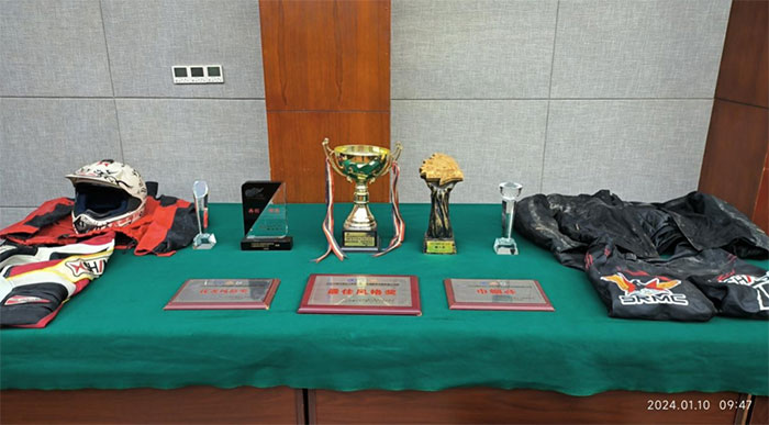 在捐赠仪式上,鑫源国际车队捐赠了当年的比赛服装、靴子、以及在中国环塔拉力赛中获得的奖杯、奖牌等。在这些赛场荣誉后面,还有许多无私奉献、团结协作,传播人间真情的故事。