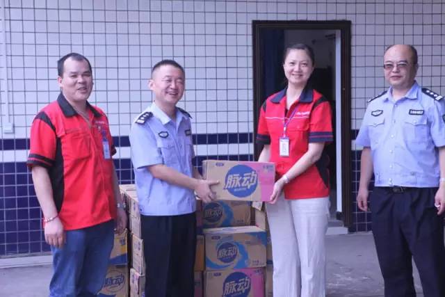 第二站来到重庆市公安局九龙坡区分局含谷派出所,受到了谢军所长和各位民警们的热情迎接。对于长期奋战在一线,与犯罪分子进行斗争的民警们,此次向民警们赠送的不仅是一份清凉饮料,还有一份敬意,对他们维护片区和平安全表达深深的敬意。
