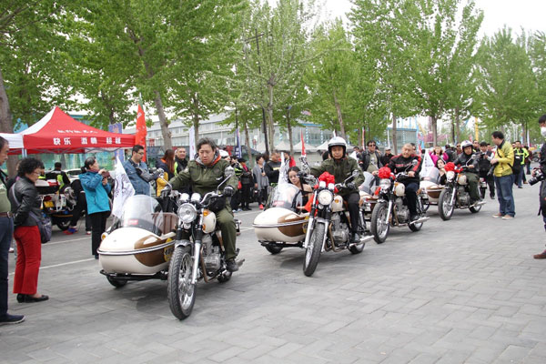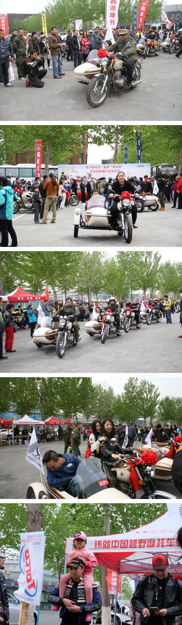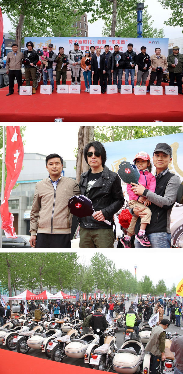 4月19日,国内首款复古边三轮摩托车鑫源“周末风”,在北京休闲胜地——蟹岛度假村举行了隆重的首批用户交车仪式,向北京地区抢购到第一批“周末风”的用户移交了车辆,约三百位摩友见证了这一影响挎子发展史的重要时刻。